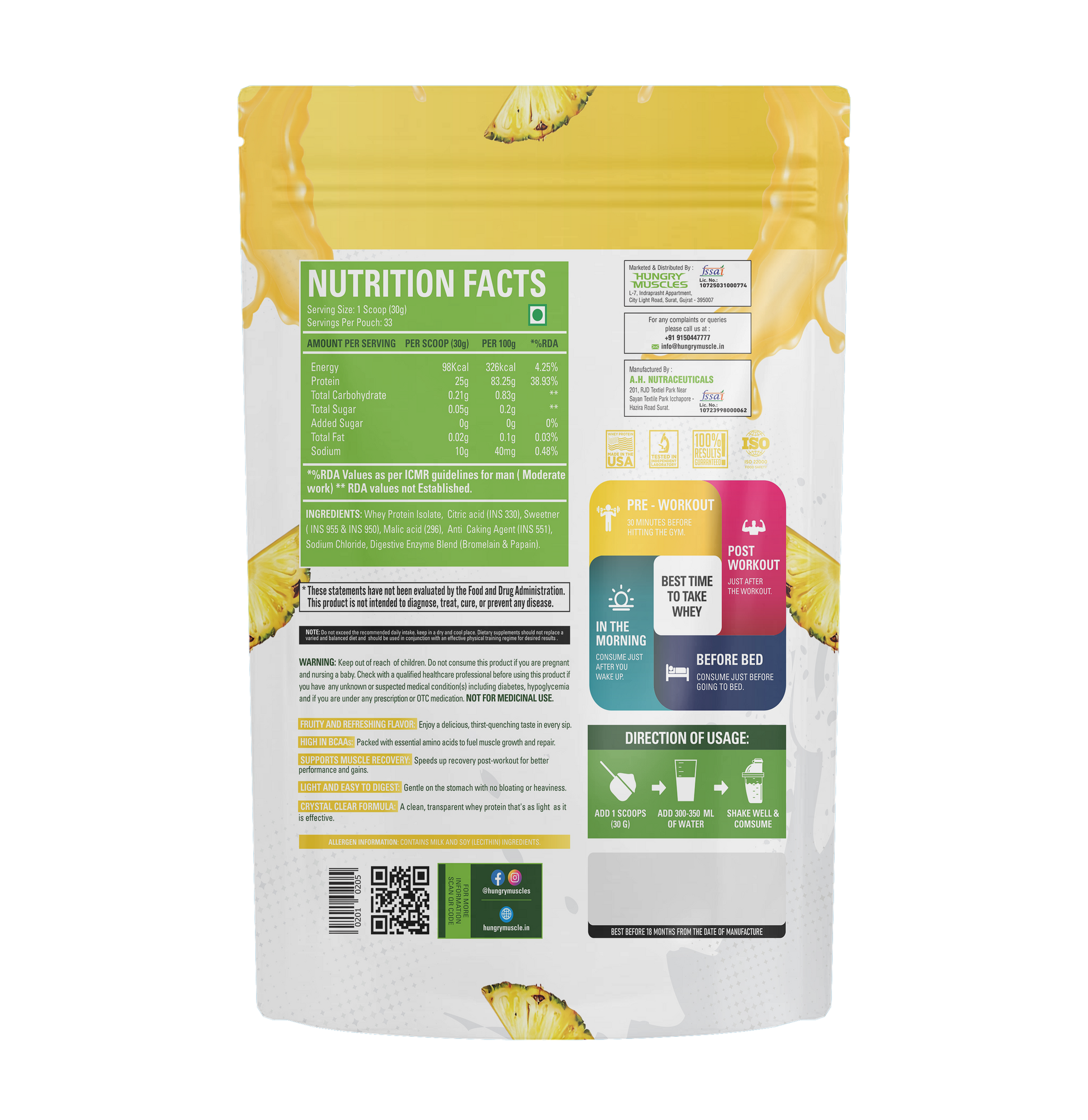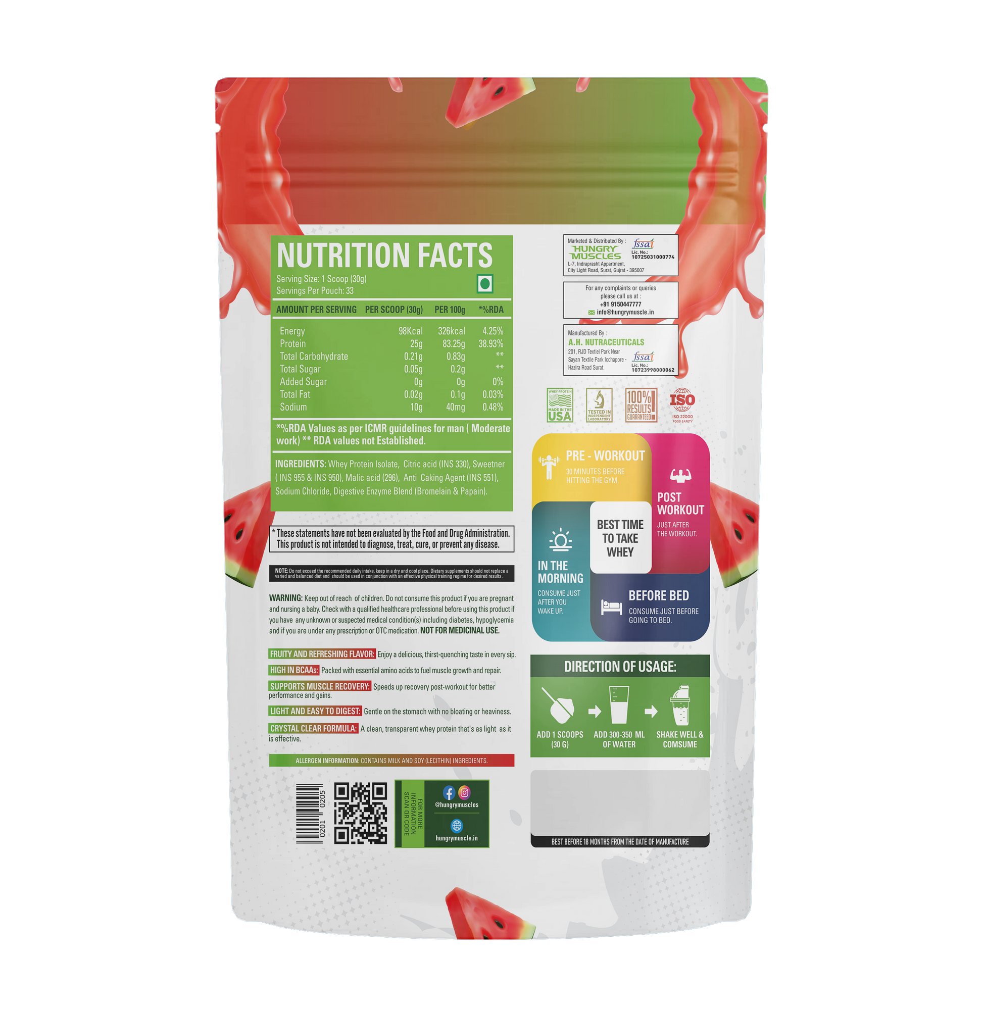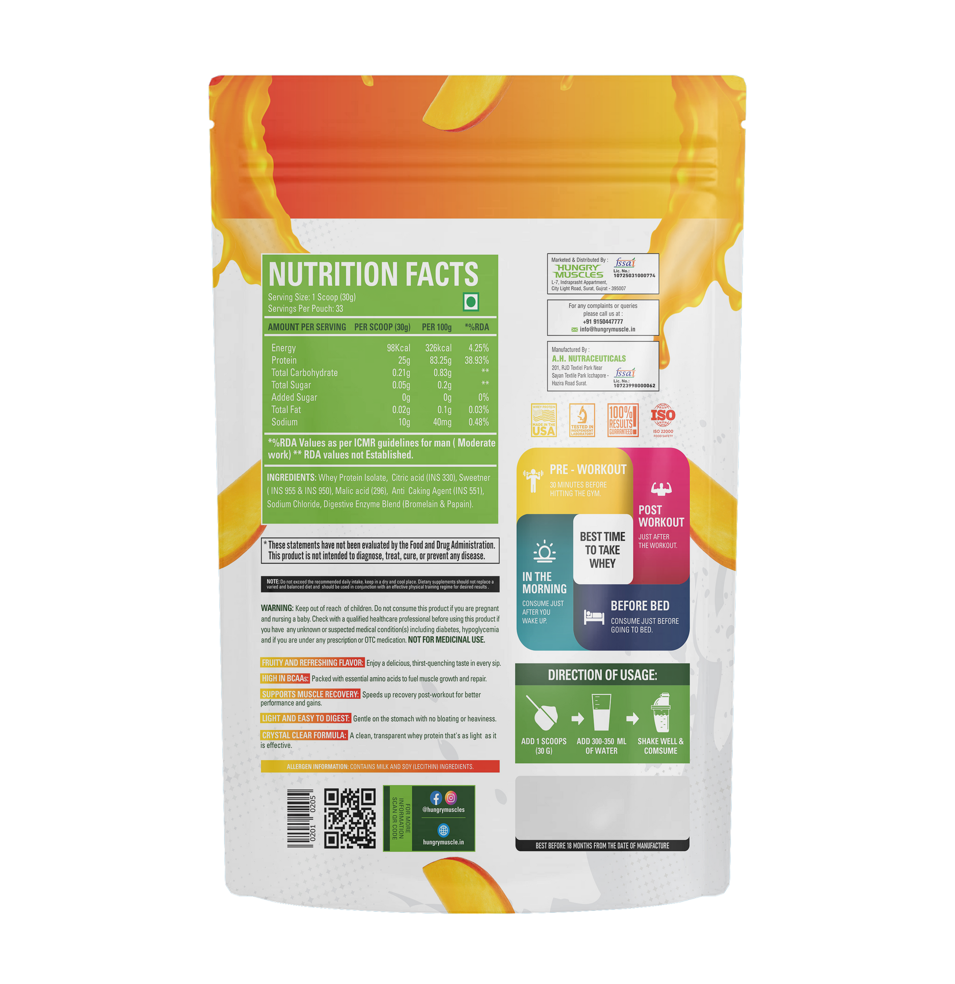 Hungry Muscles™ Clear Whey Protein redefines post-workout nutrition with a clean, refreshing alternative to thick protein shakes. Formulated with hydrolyzed clear whey isolate, it delivers fast-digesting, high-quality protein to support lean muscle growth, quicker recovery, and improved performance.